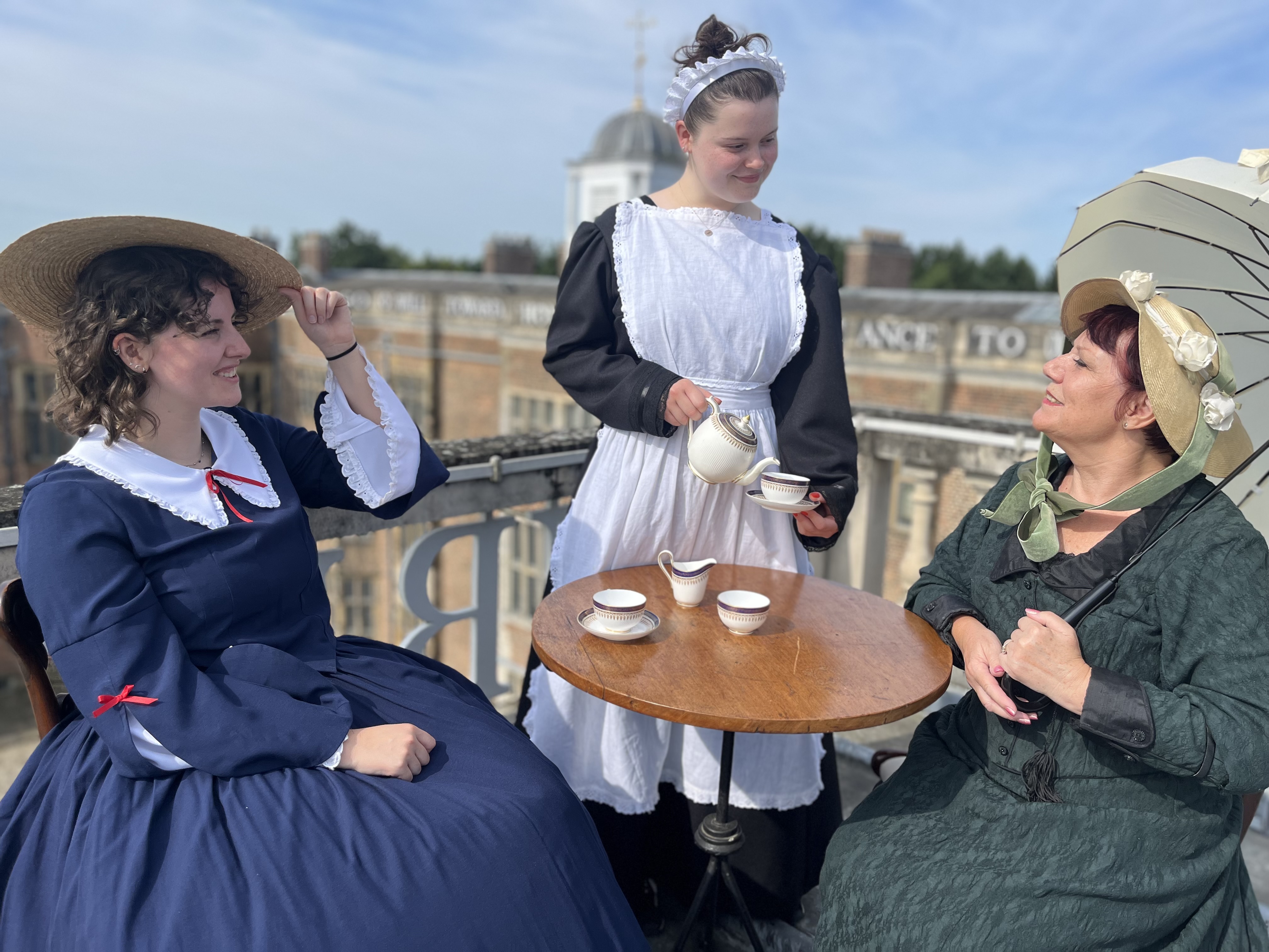 Members of the house team donned 19th century costumes and took to the rooftop to take tea in style, surrounded by breath-taking views of the sprawling estate.