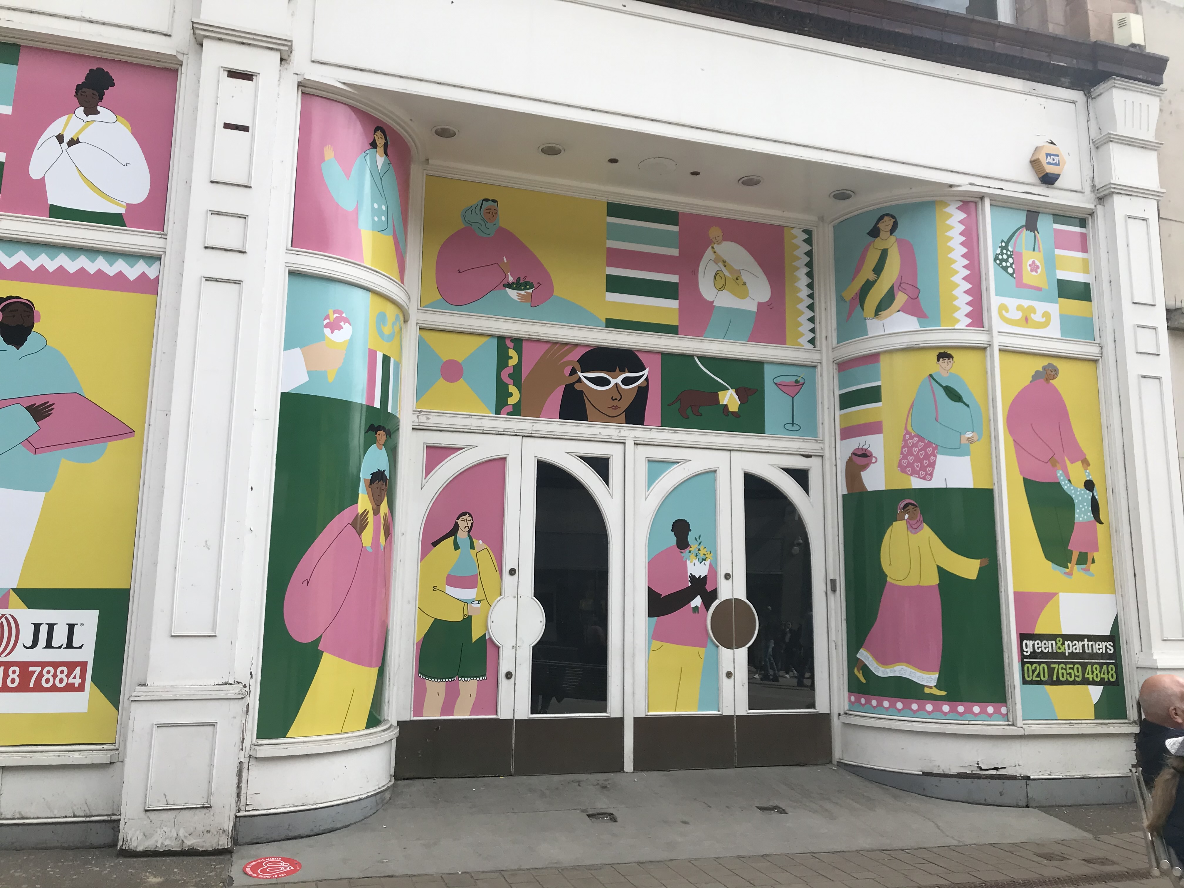 Leeds City Council arranged and funded the artwork, teaming up with LeedsBID (Leeds Business Improvement District) along with the management teams at Victoria Gate, Victoria Quarter and Trinity Leeds to bring vacant units to life.