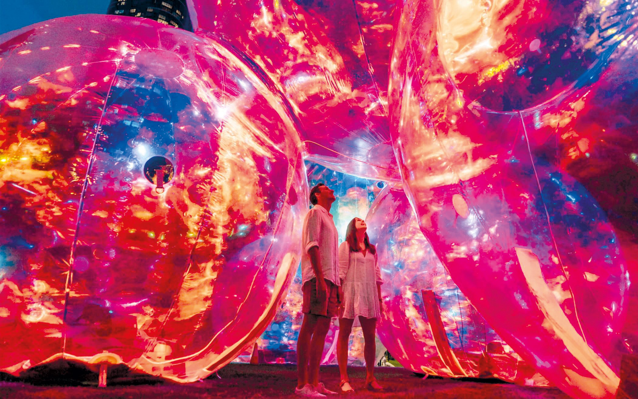 Standing more than eight metres tall, the remarkable artwork will give visitors the chance to walk amongst a series of large, illuminated and colourful bubbles accompanied by a spellbinding soundscape.