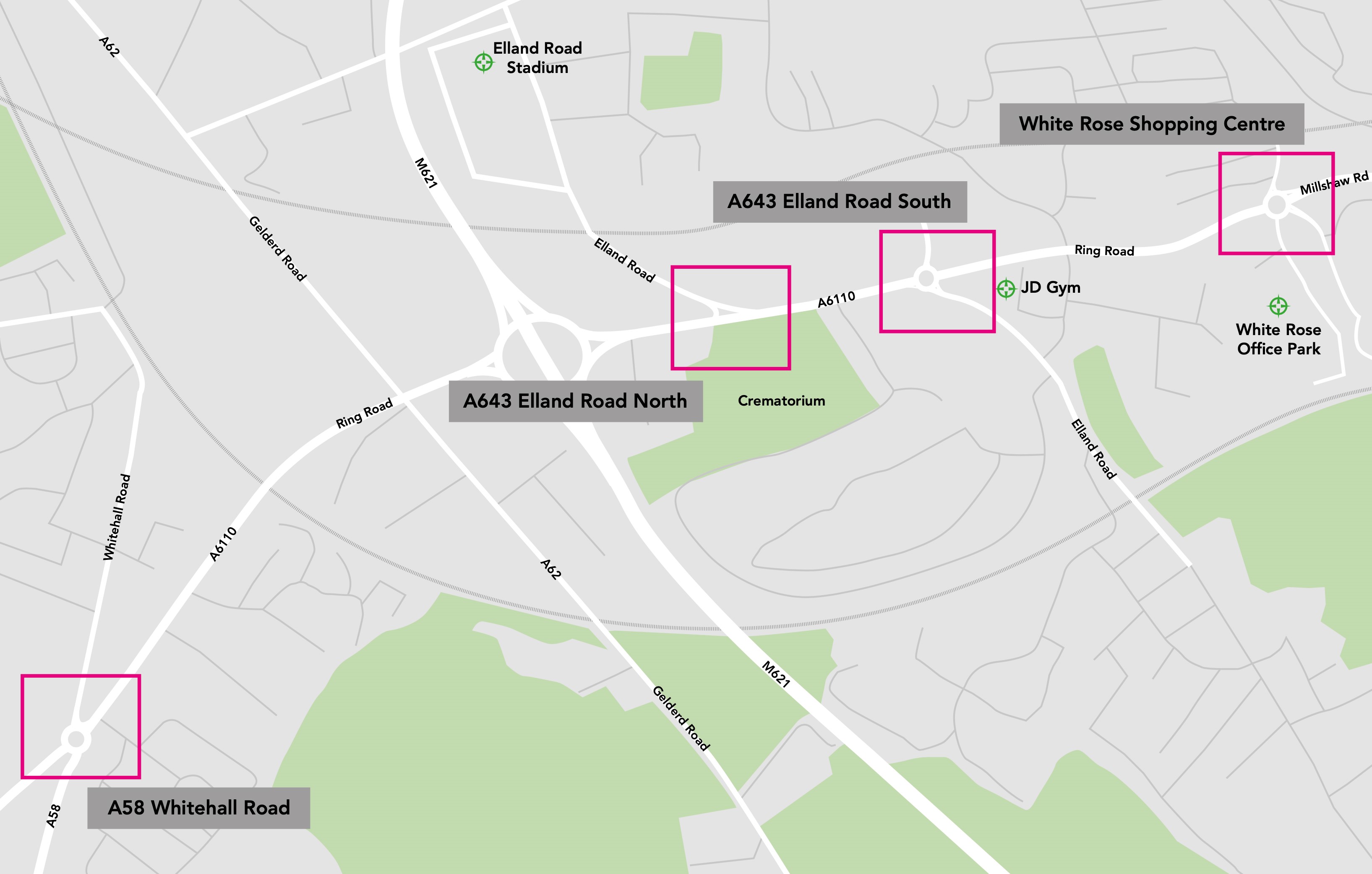 A new consultation starts today, 2 November to deliver improvements on the A6110 Outer Ring Road between the White Rose Shopping Centre, A643 Elland Road and A58 Whitehall Road.
