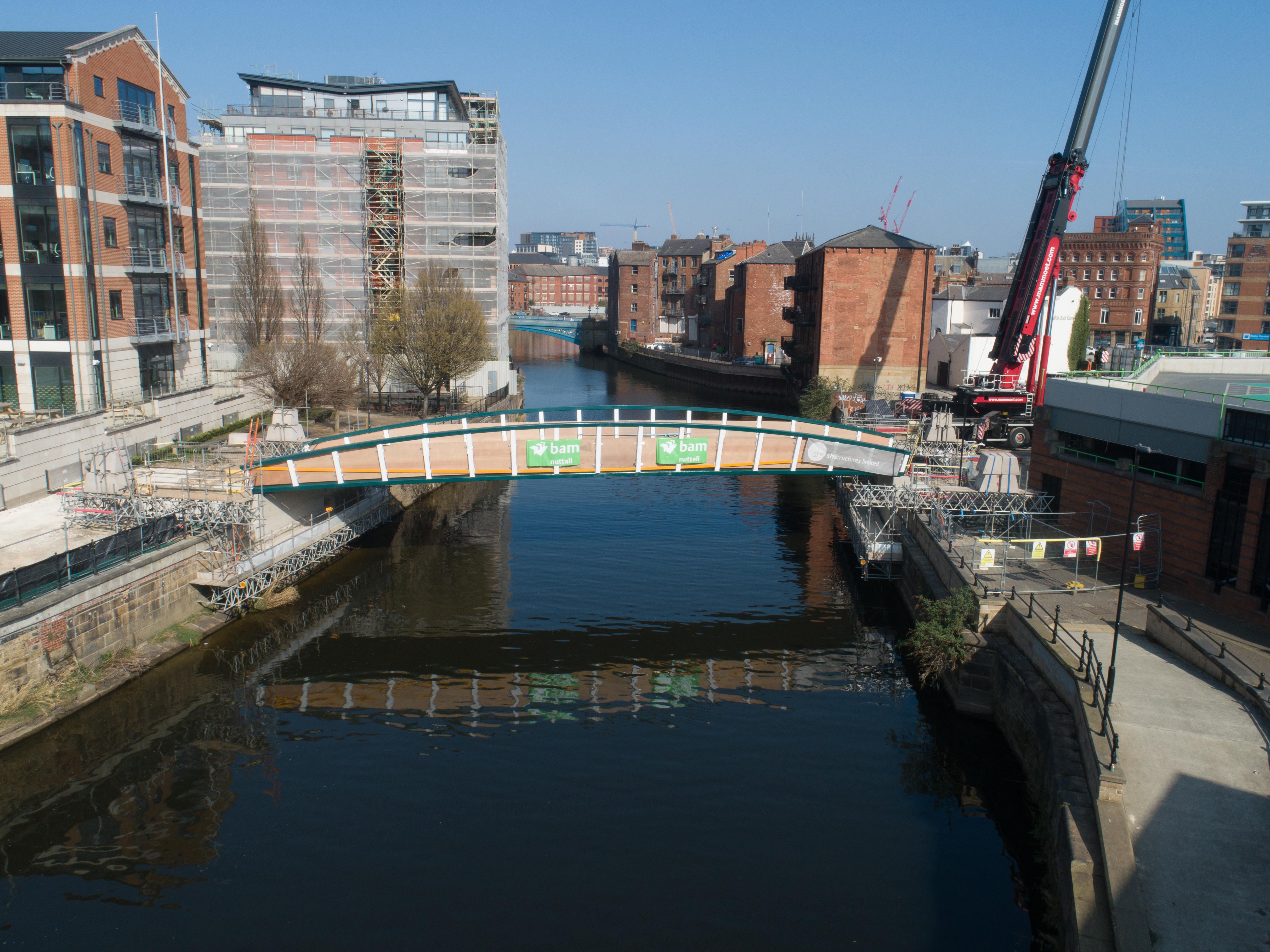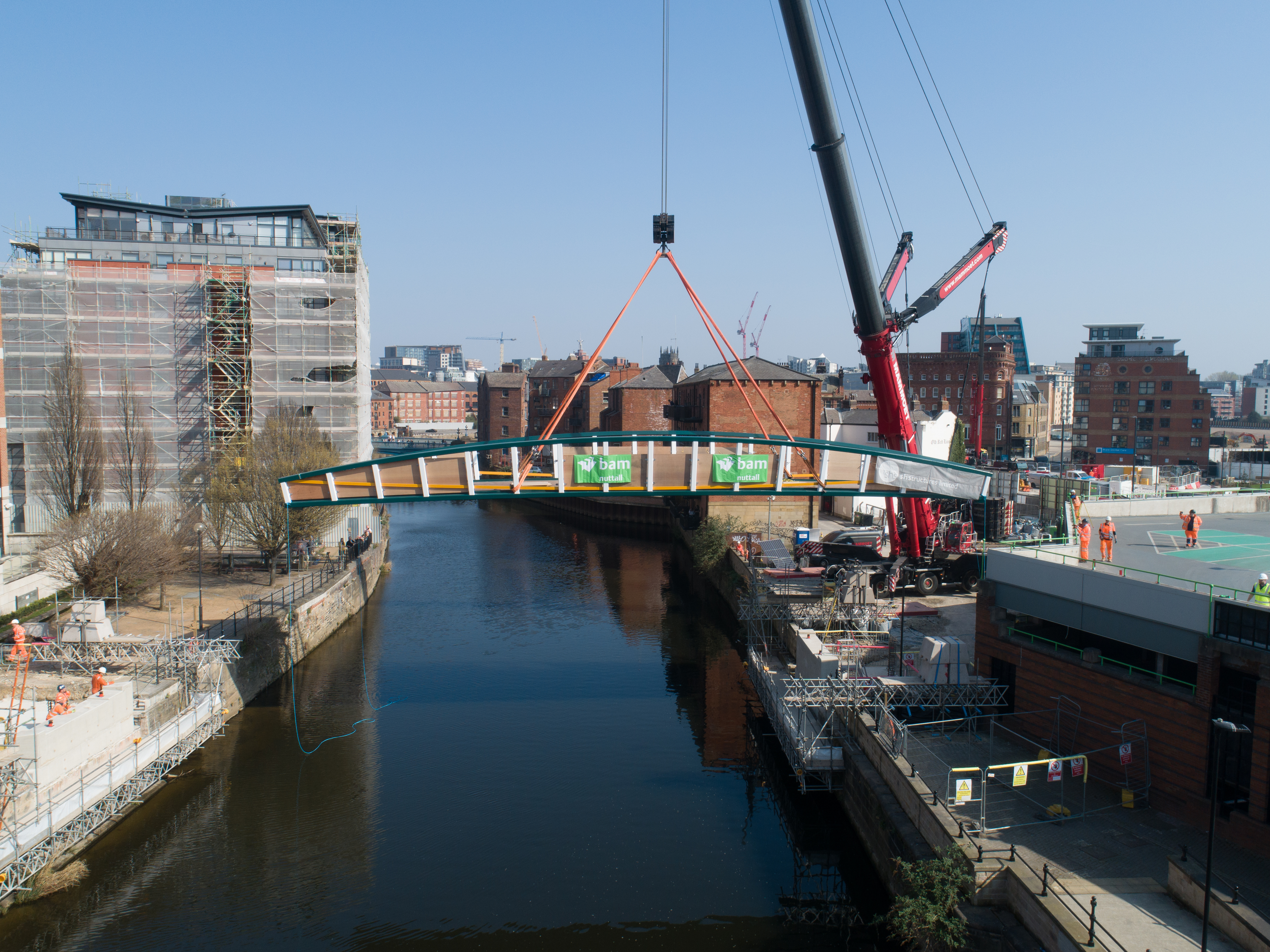 Engineers working on the David Oluwale bridge completed one of the project’s major milestones over the weekend, with cranes carefully placing the 40 tonne structure over the river where it will connect Sovereign Street to Water Lane.