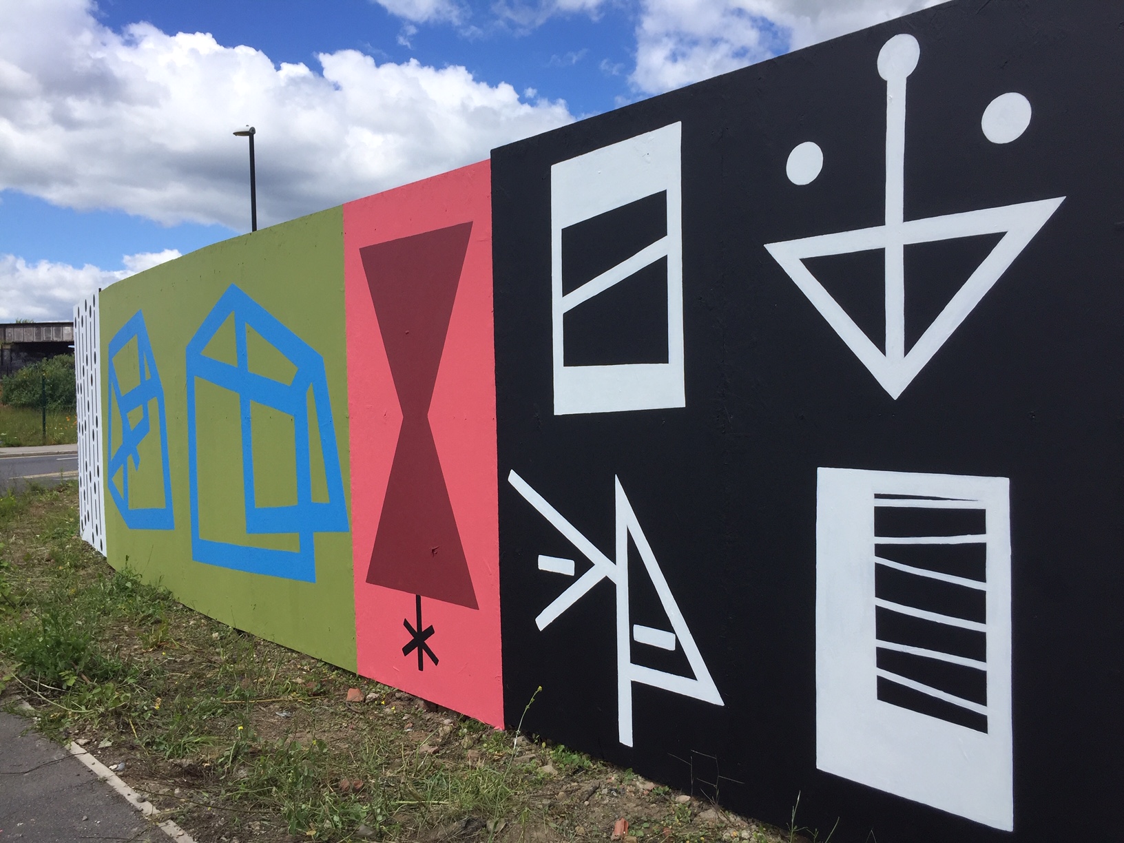 The design of the mural is inspired by the weaving heritage of Leeds, abstract geometry and site specific shapes and symbols. When completed the artwork will be the longest piece of abstract art in the UK.