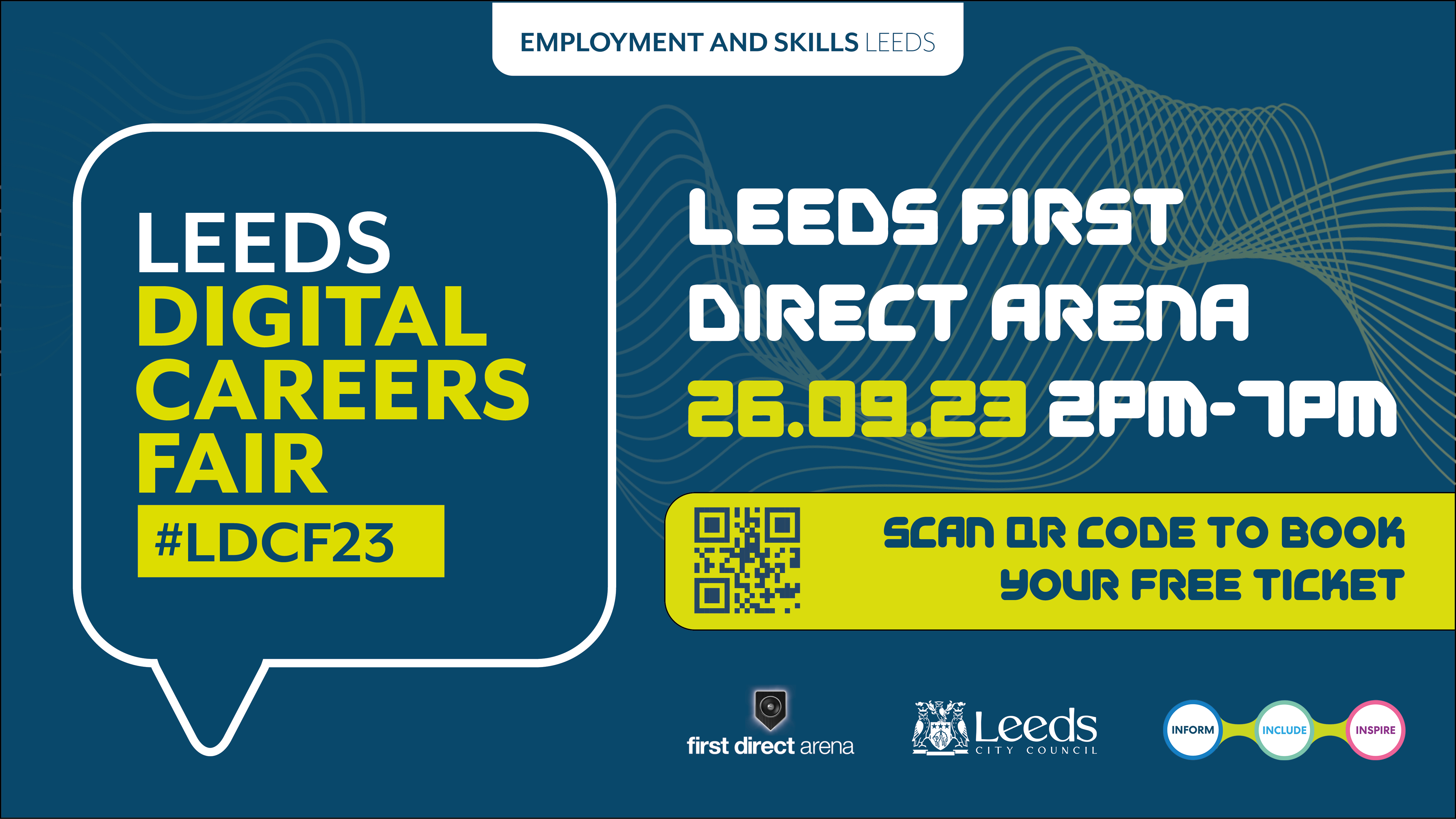 The Leeds Digital Careers Fair takes place at the Leeds first direct arena on 26 September 2023, between 2 -7pm. Tickets are available online at: https://www.universe.com/events/leeds-digital-careers-fair-2023-tickets-CB6QF4