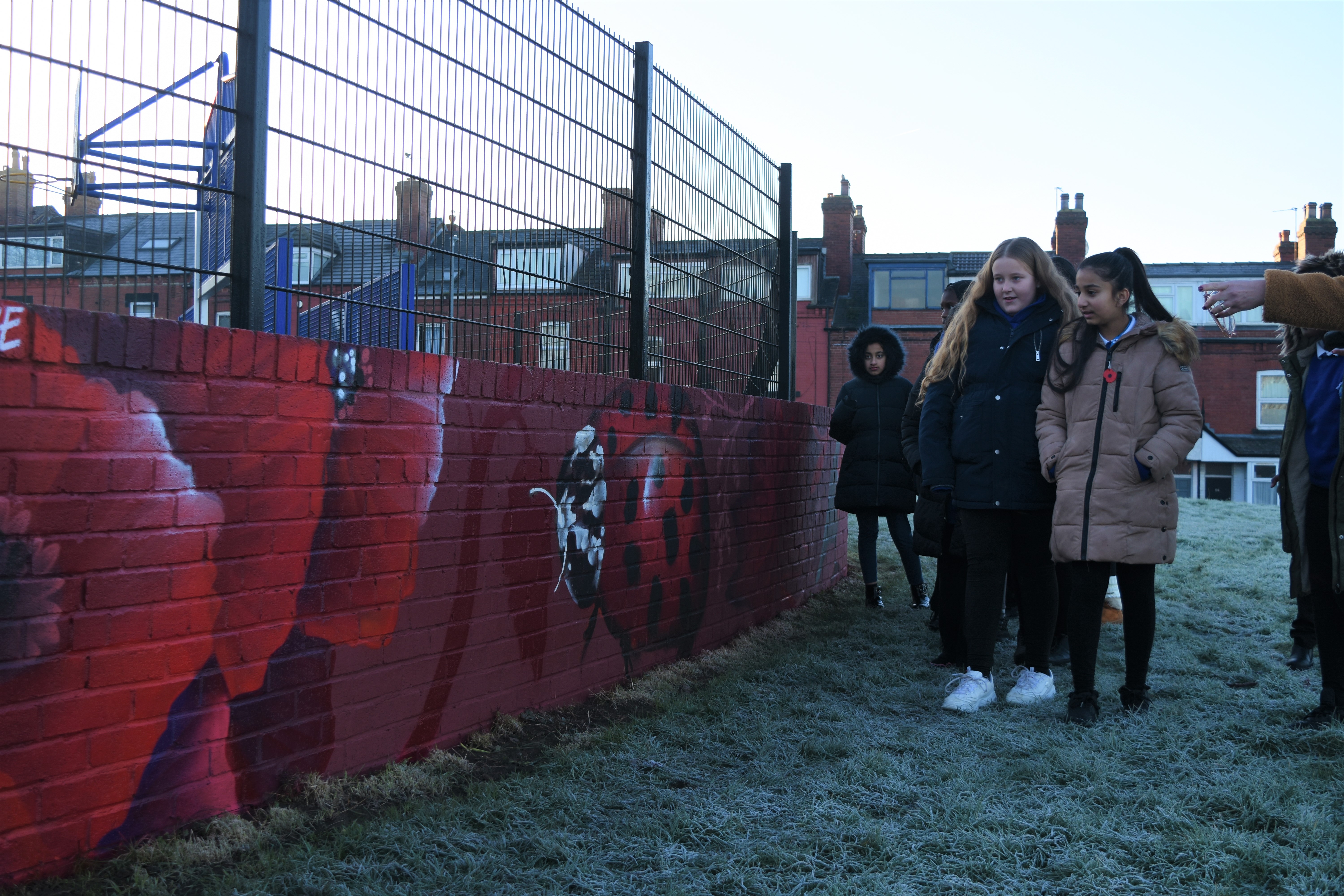 Wrapping all the way around the outside of the wall surrounding the multi-use games area, the new mural is set to be finished Friday 17 January.