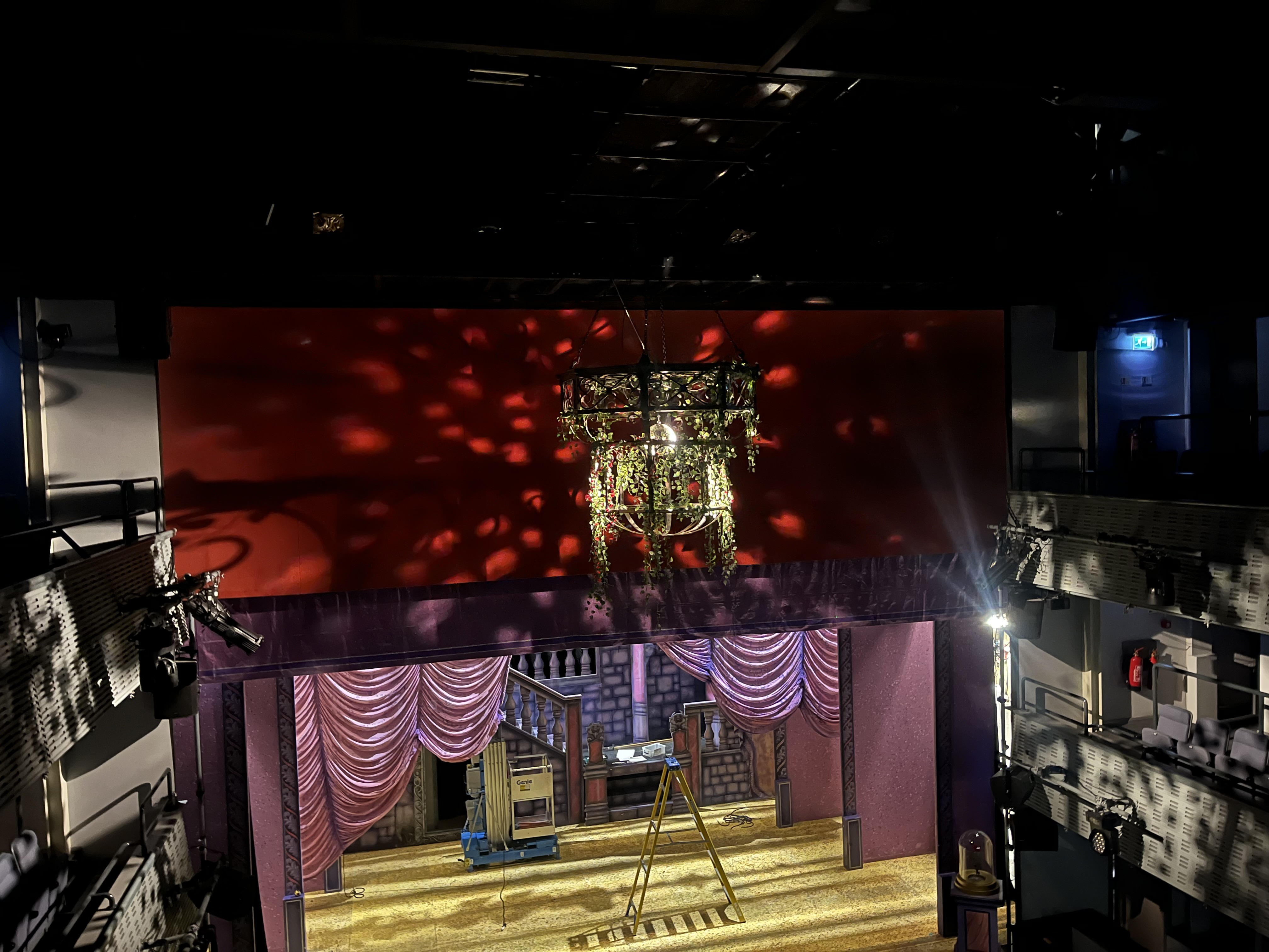 Although its age means it can no longer be powered by electricity, by carefully affixing a disco ball to the centre of the chandelier, stage lights can be reflected through its bulbs and around the theatre’s auditorium.