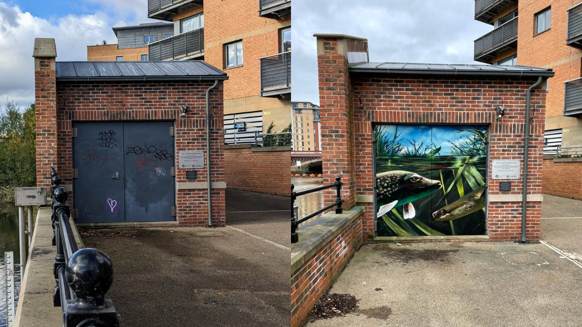 The artwork highlights Leeds’ historic mills, as well as ducks, pike and eels that are all present in the river. The Flood Alleviation scheme was built with protection of wildlife in mind, with fish and eel passes included as part of the design. In addition, it is hoped the new artwork will deter vandalism going forward, reducing the time, effort and money that the council has previously spent on reinstating the doors.