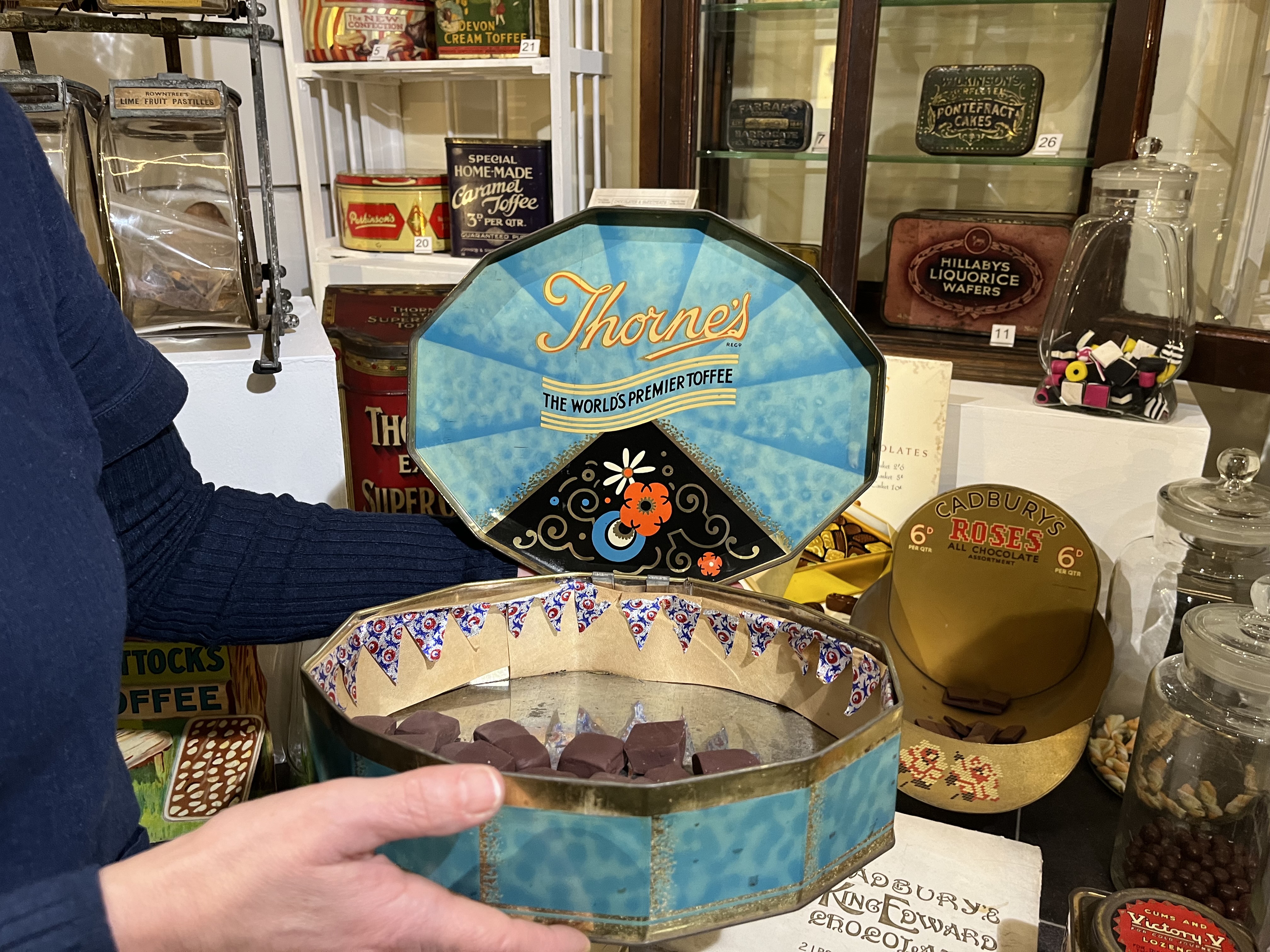 Also on display is a series of toffee tins from Henry Thorne & Co. Ltd of Leeds. With a large factory on Edward Street, near the old West Yorkshire bus station, the company was a leading name in confectionery production, reputedly making more than two million pieces a day by the 1960s.
