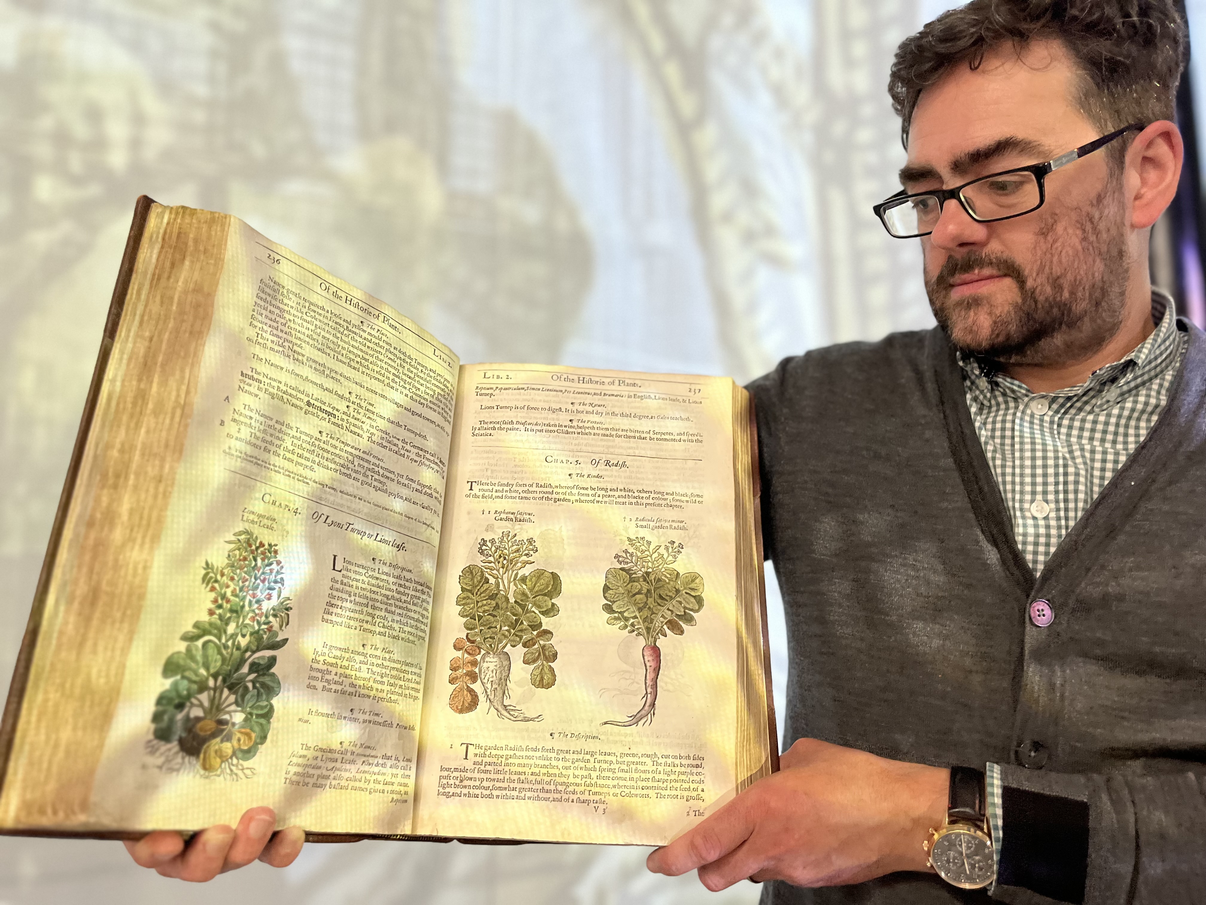 Among the treasured tomes on display is a copy of The Herball or Generall Historie of Plantes, written by famed Elizabethan herbalist John Gerard.