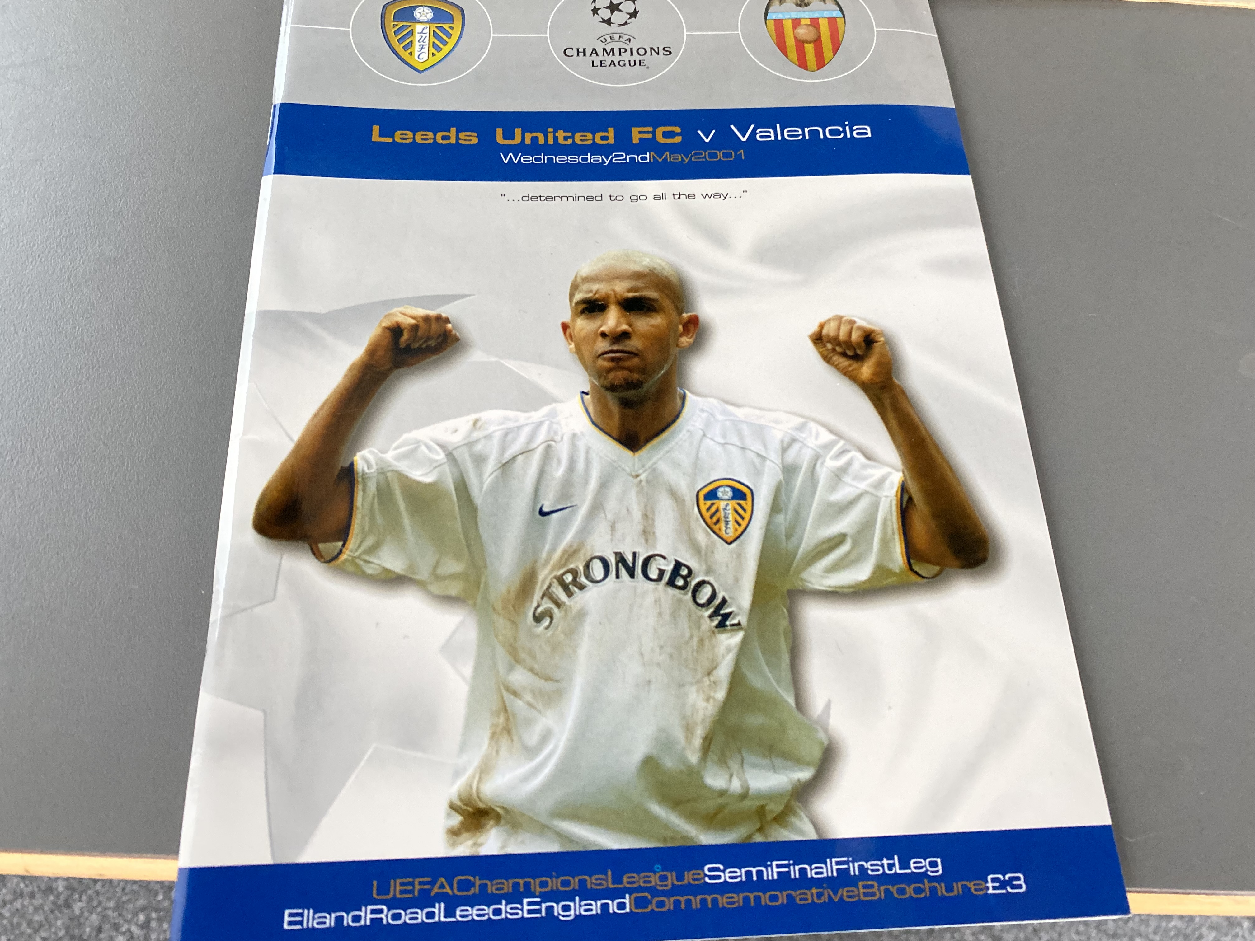 Highlights include a programme from the club’s memorable Champions League semi-final first leg clash with Spanish giants Valencia in May 2001. The tie finished 0-0, with David O’Leary’s young side going on to suffer a heart-breaking 3-0 defeat in the second leg, missing out on a place in the final.
