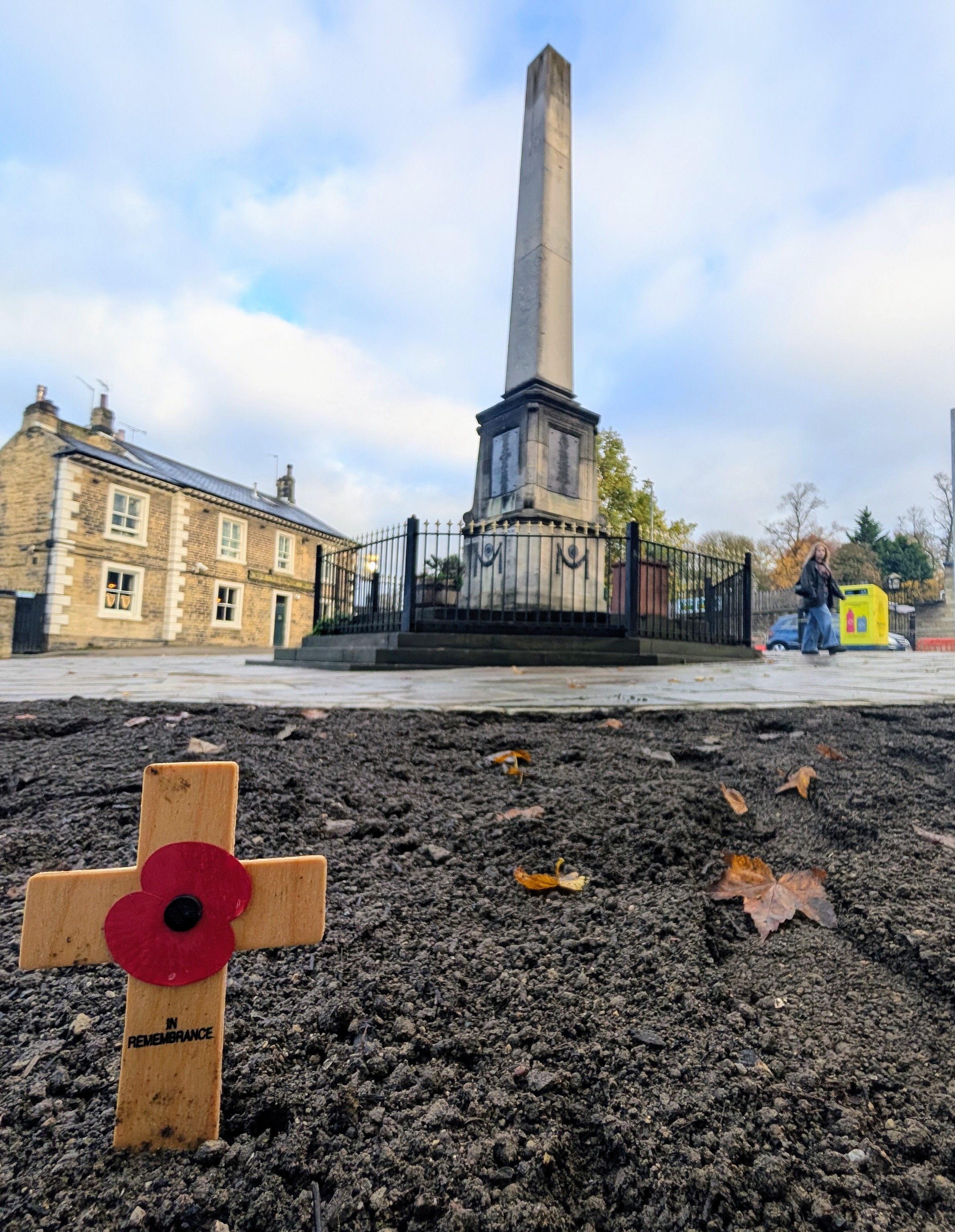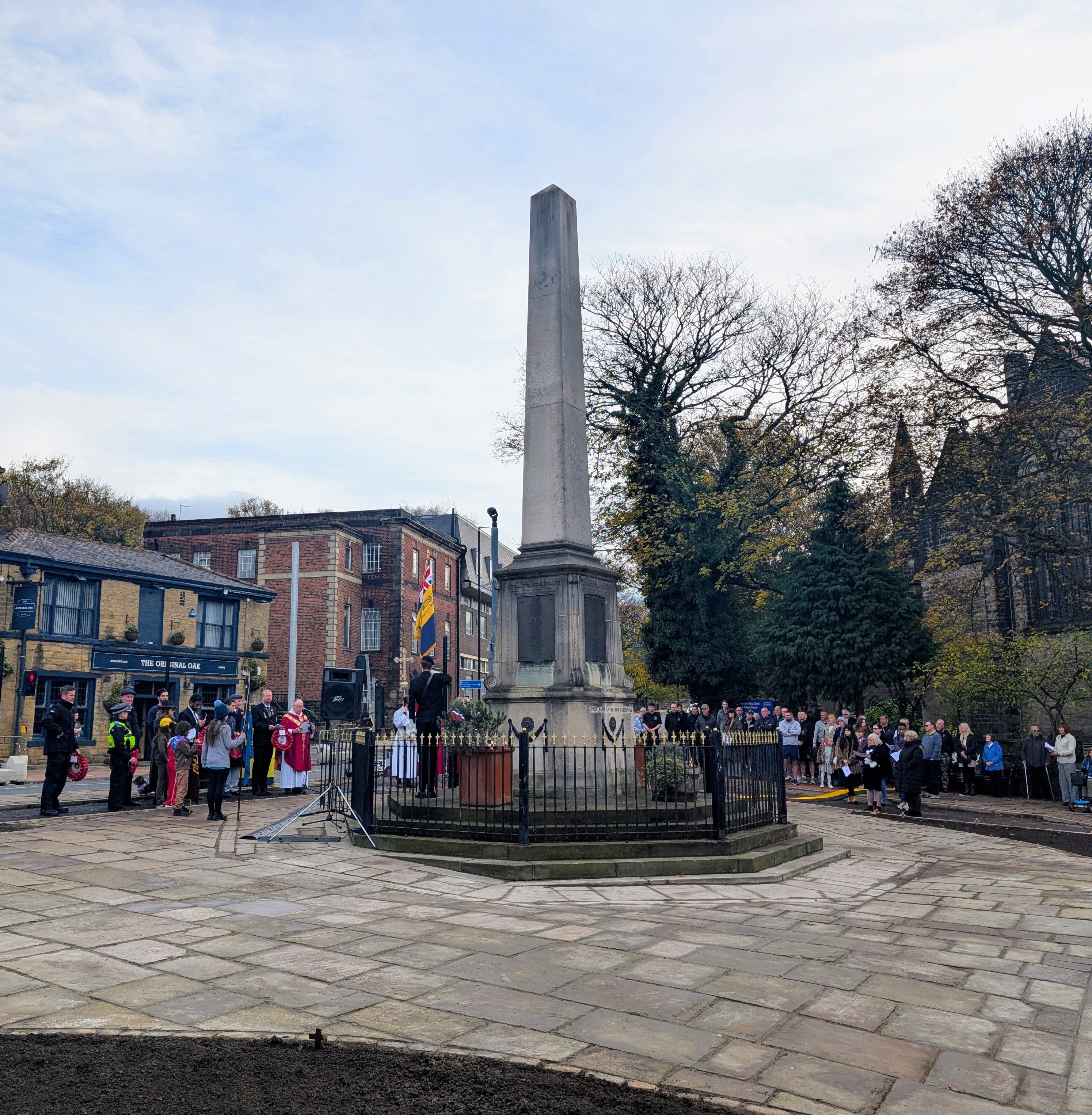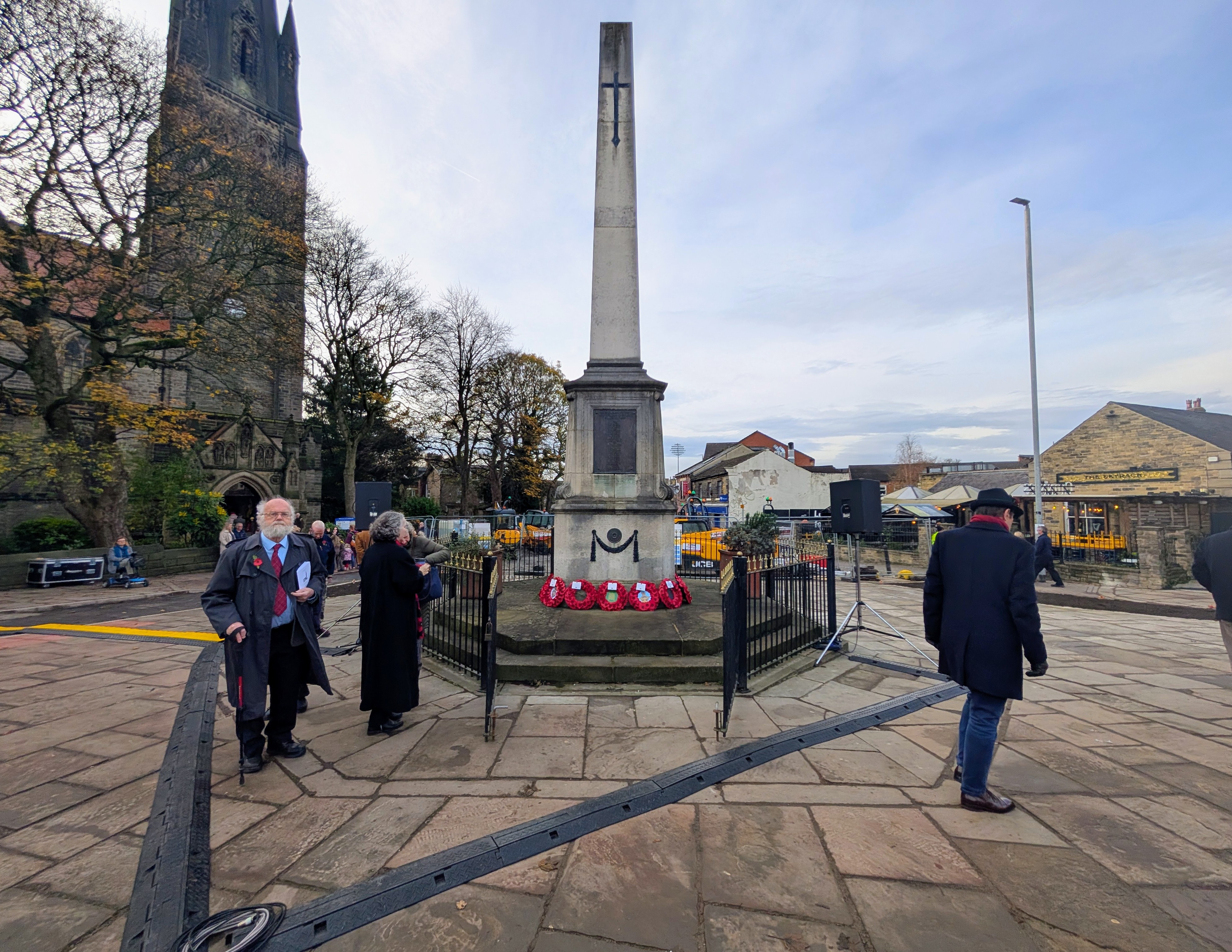 Before Sunday 9 November, the memorial bench was reinstalled and planters made ready with memorial crosses donated by nearby St.Michael and All Angels' Church. Additional work was carried out to ensure the site was fit for purpose for the Ashes rugby league test match at AMT Headingley Stadium on Saturday and Hinko Construction also mobilised a street cleaning team on Sunday morning to ensure the space was clean and tidy.