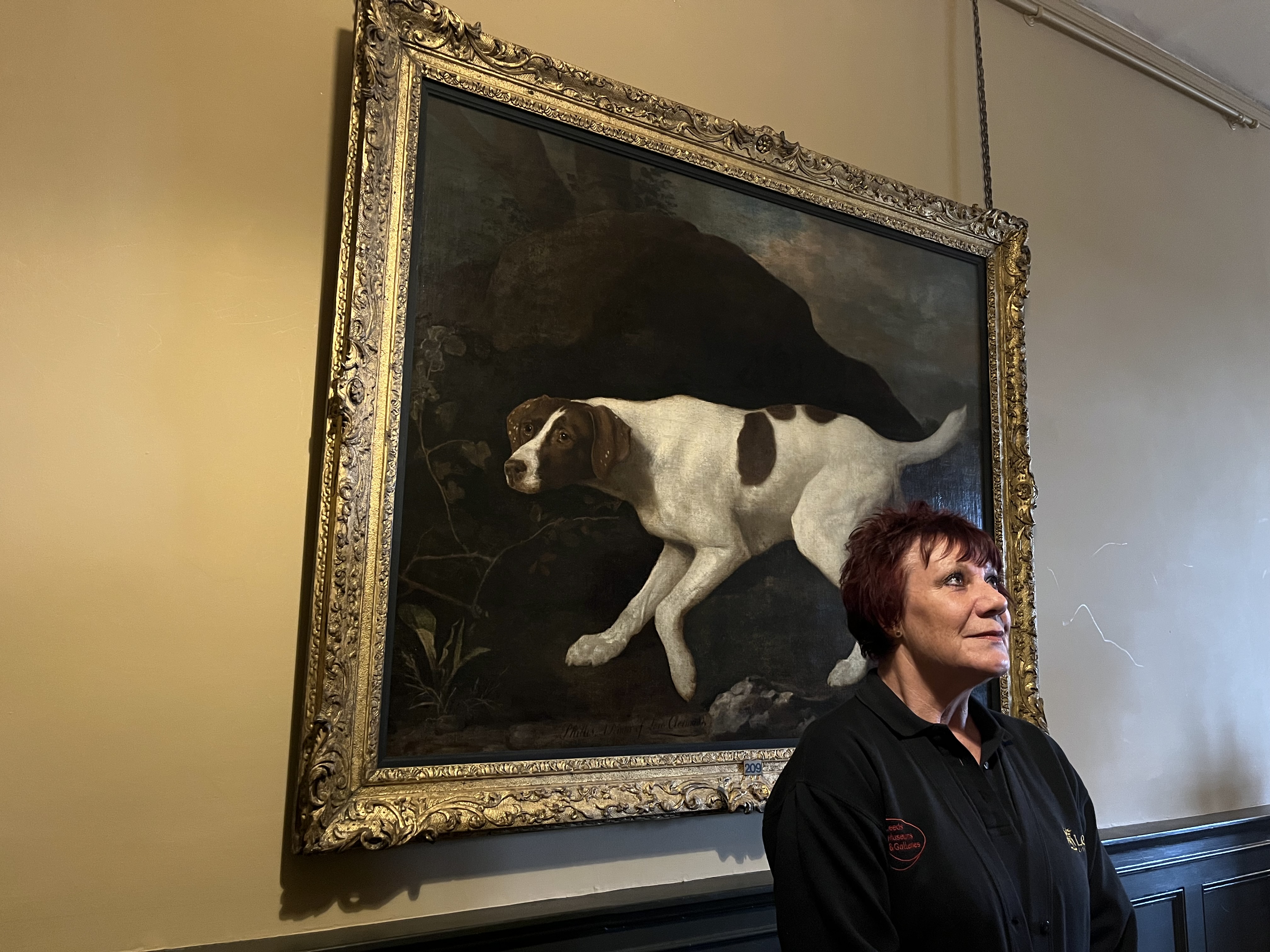 Visitor assistant Deborah Crossley with the beautiful oil painting of Lord Clermont’s faithful canine companion, which has gone on display to visitors for the first time in a number of years, following a loan spell at Wentworth Woodhouse in Rotherham. Painted by celebrated artist George Stubbs in 1772, the portrait of Phillis was commissioned by her owner William Henry Fortescue, Lord Clermont, a keen sportsman who kept a sizeable kennel, but who was known to be particularly fond of Phillis.