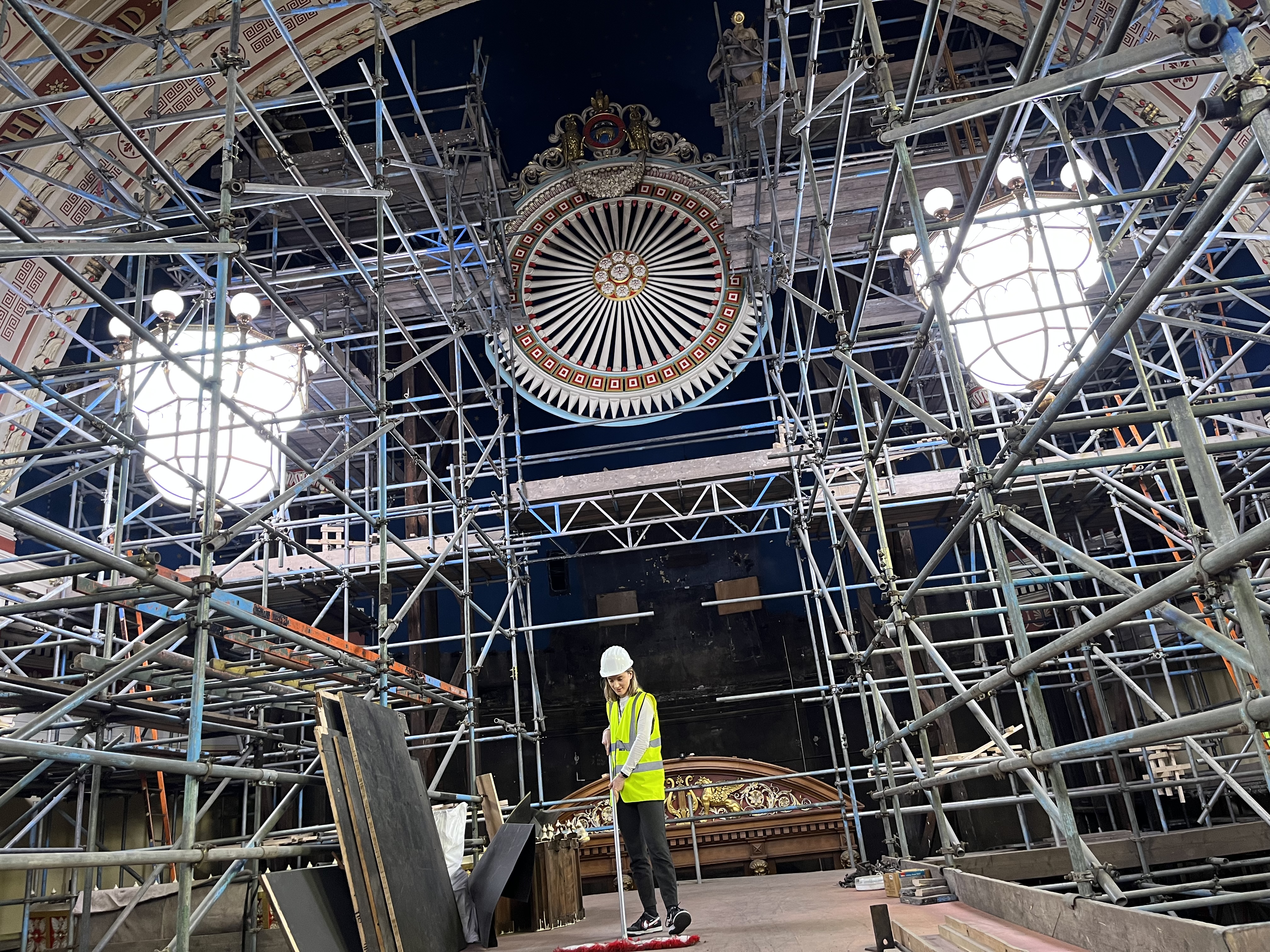 Aimee Wood of the Leeds Town Hall team pitches in with a mammoth spring clean of Victoria Hall ahead of a major revamp of the stunning performance space.