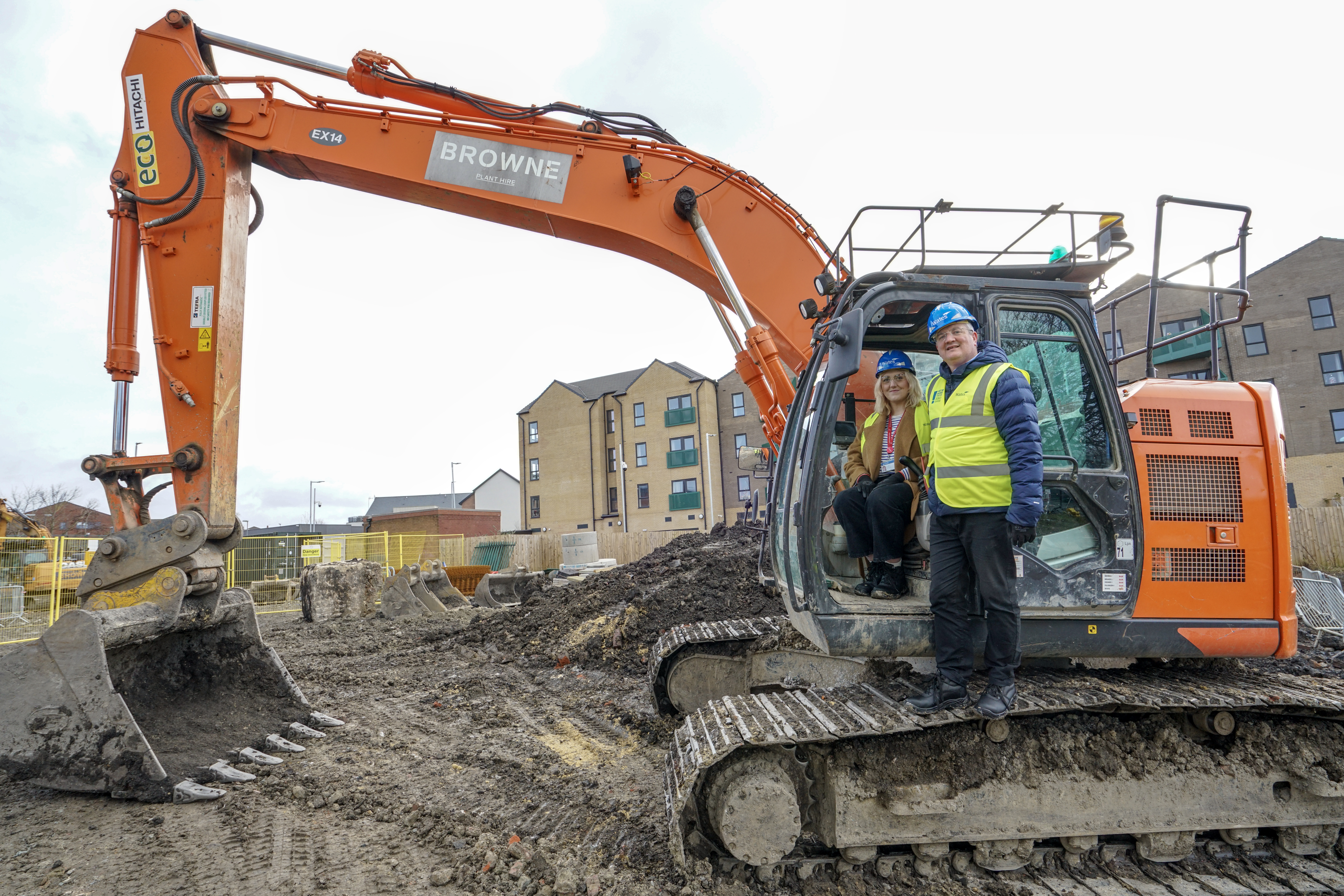 Councillor James Lewis, the leader of Leeds City Council, and Councillor Jess Lennox, the council’s executive member for housing, visit the Brooklands Avenue building site.