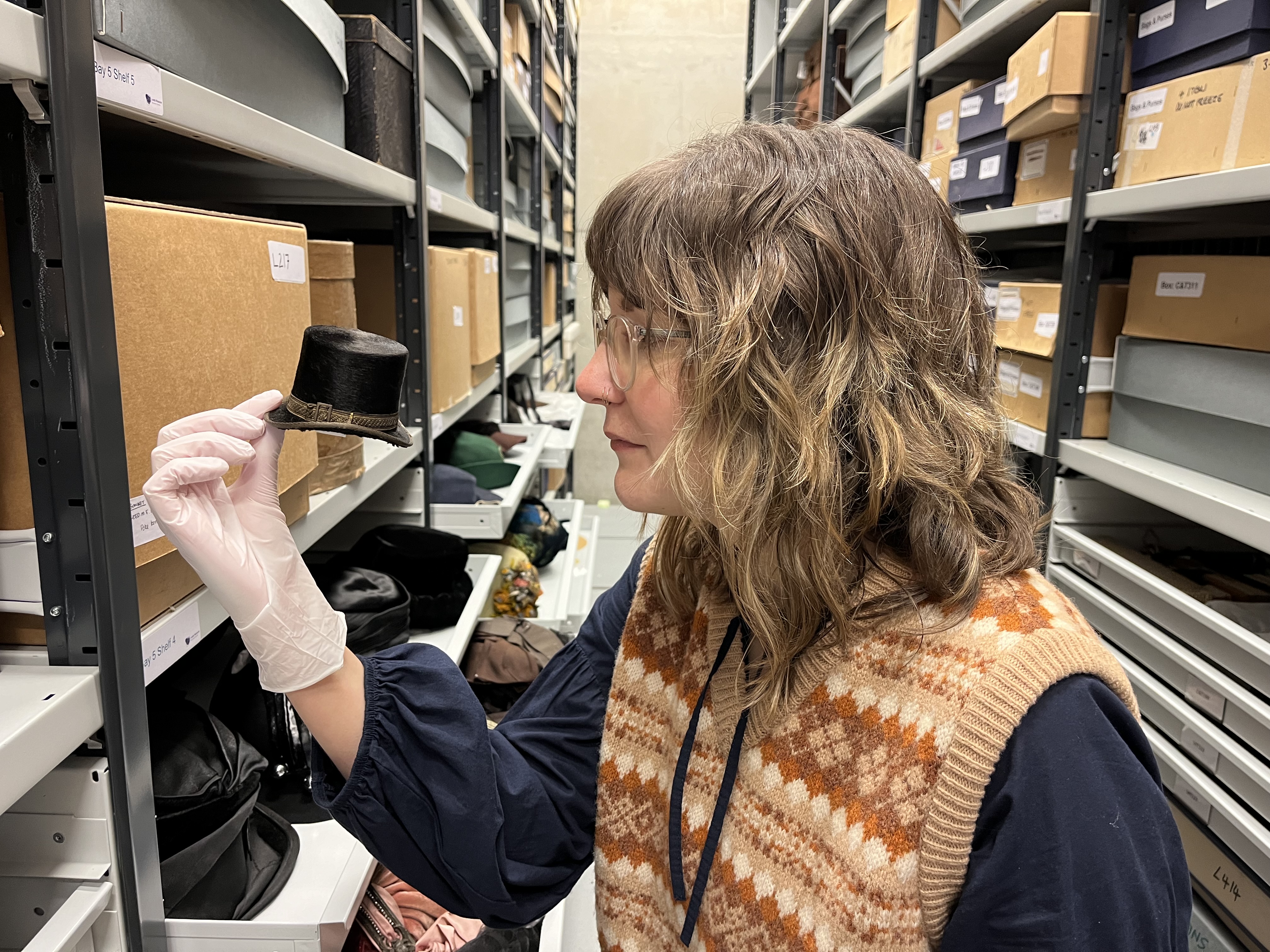 A tiny top hat, one of a remarkable range of tiny replica hats, some of which fit in the palm of a hand. They were made by Leeds hatter John Craig in the early 1900s and is being carefully conserved as part of a project at the Leeds Discovery Centre.