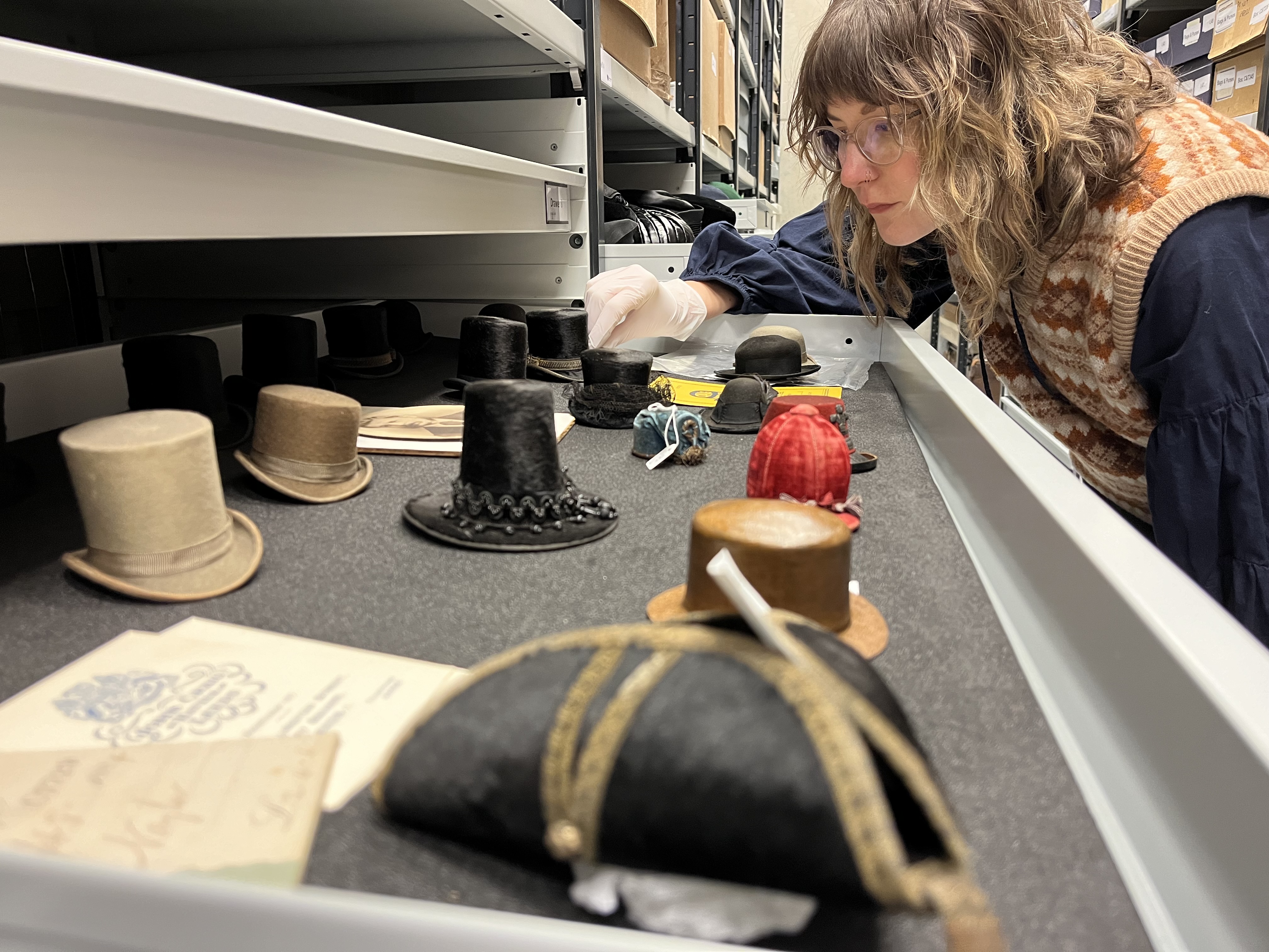 Sara Merritt, Leeds Museums and Galleries audience development officer hold a miniature jockey's hat. The remarkable range of tiny replica hats, some of which fit in the palm of a hand, were made by Leeds hatter John Craig in the early 1900s and is being carefully conserved as part of a project at the Leeds Discovery Centre.