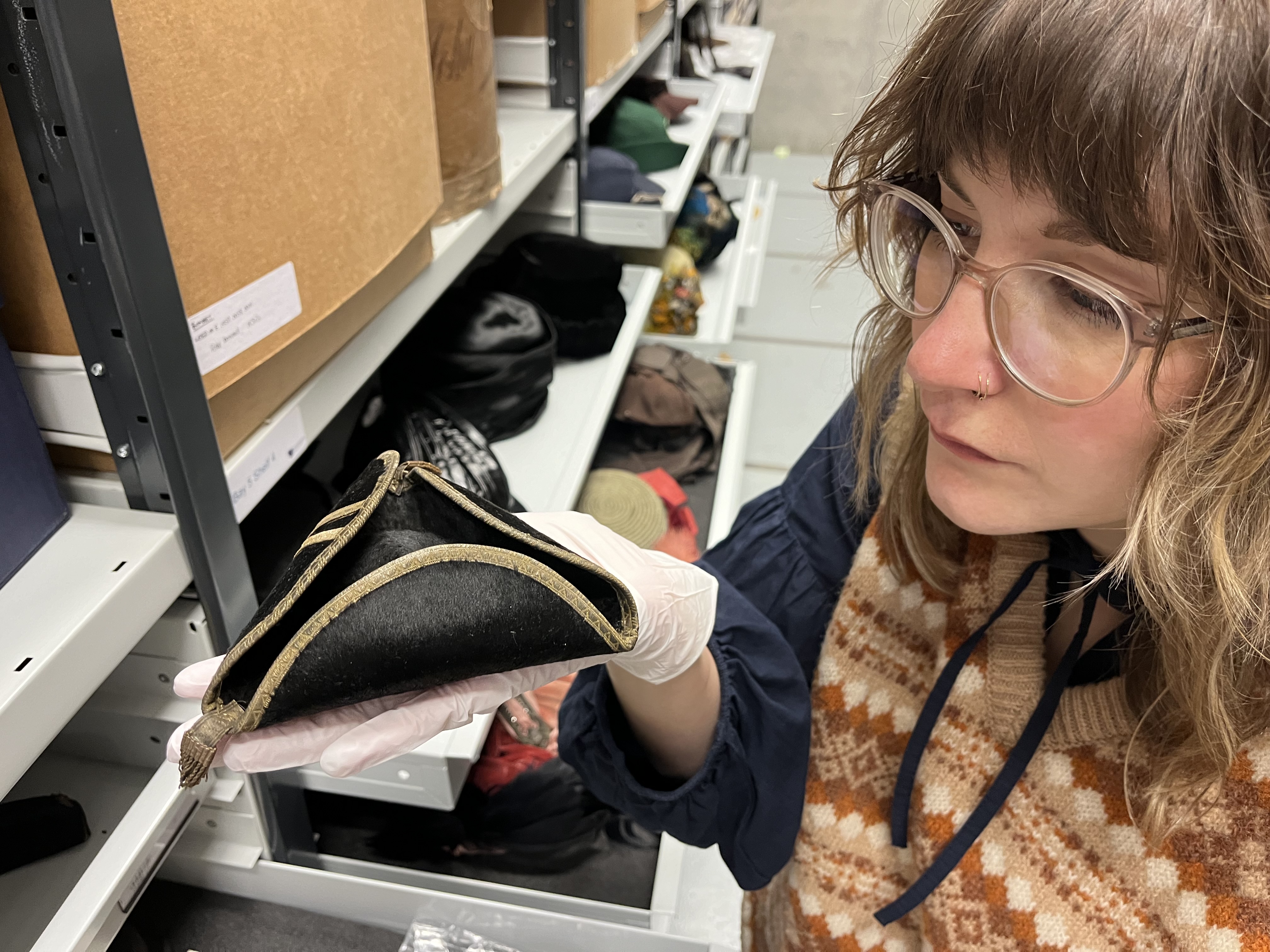 Leeds Museums and Galleries' audience development officer Sara Merritt holds a tiny tricorne hat, one of a remarkable range of tiny replica hats, some of which fit in the palm of a hand. They were made by Leeds hatter John Craig in the early 1900s and is being carefully conserved as part of a project at the Leeds Discovery Centre.