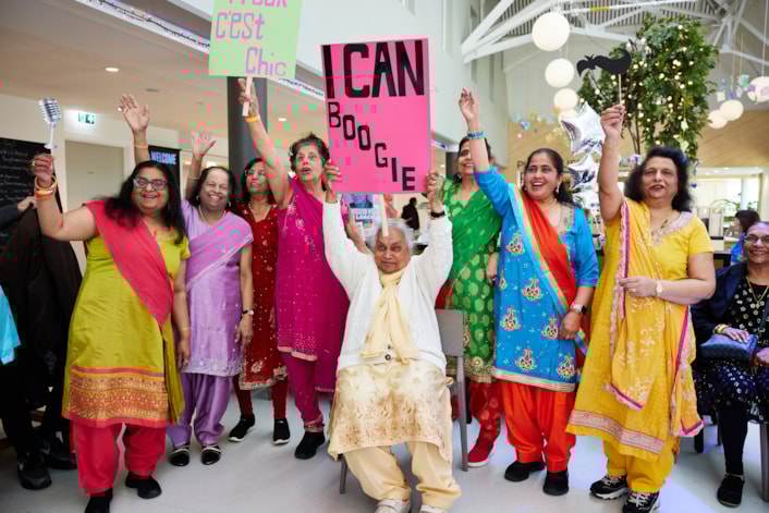 This Ghanaian baby wrap, here worn by Dora, has gone on display as part of the exhibition. It was brought to the UK by Dora's mum (R), when she left Ghana in the 1970's.