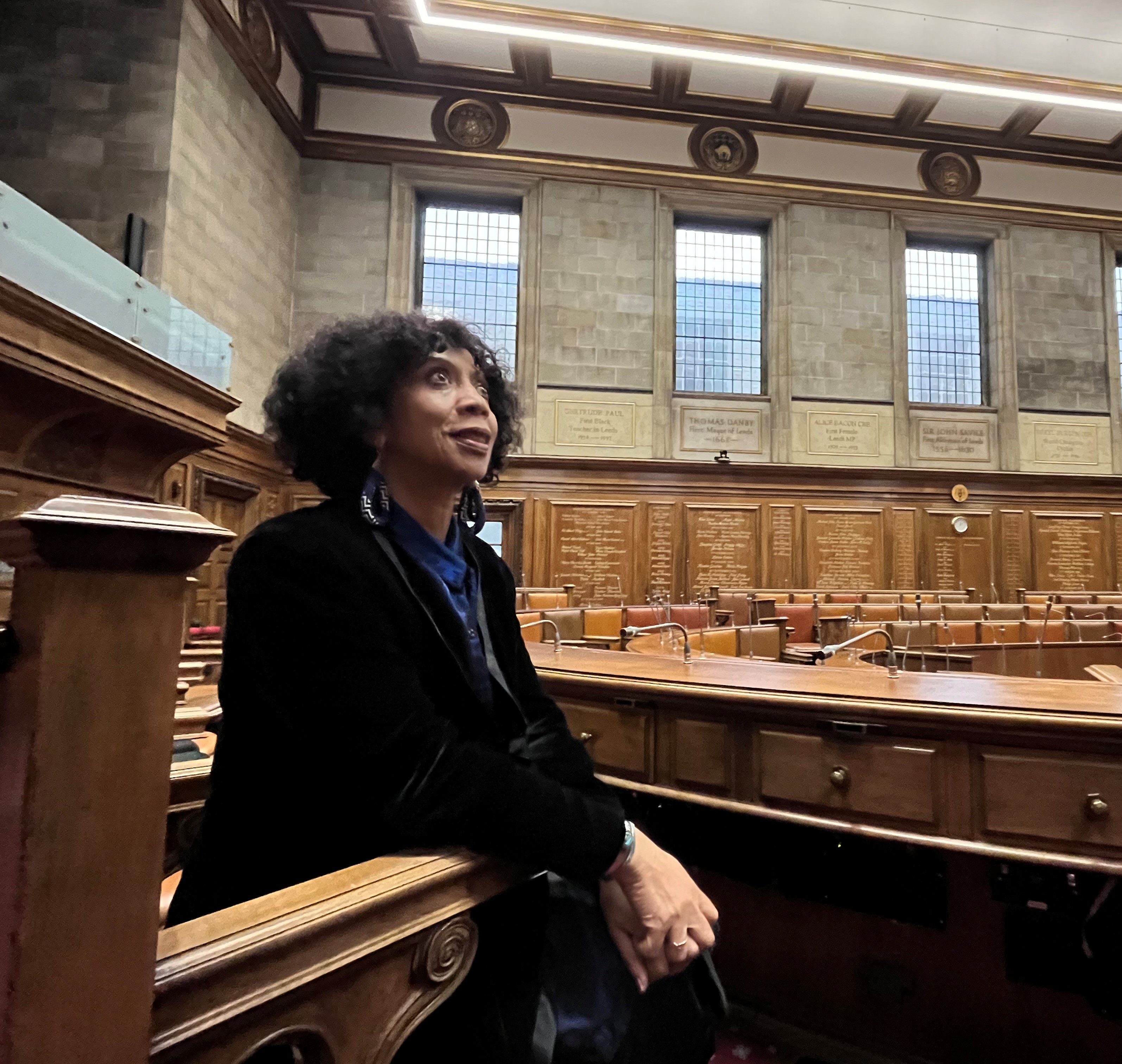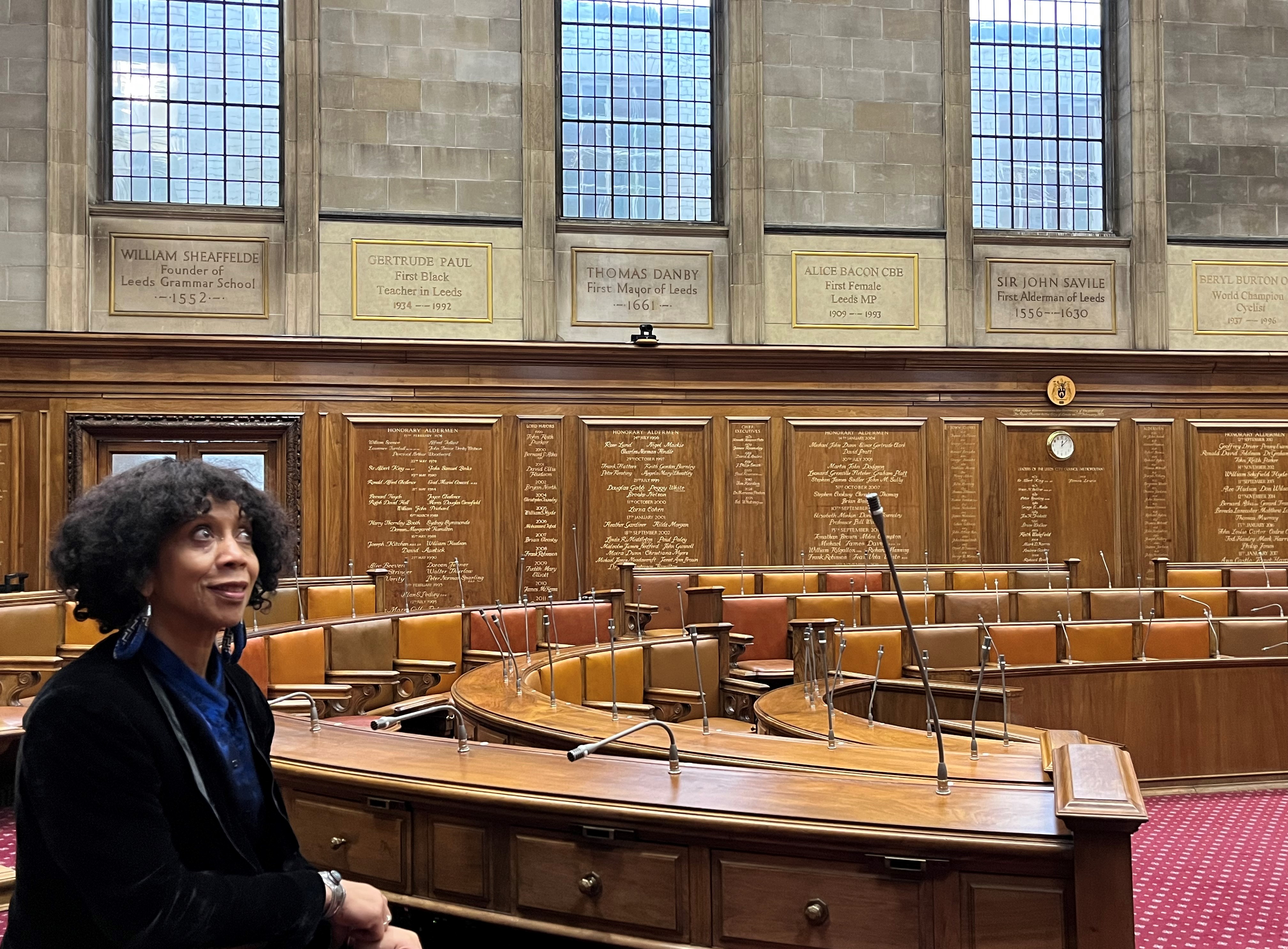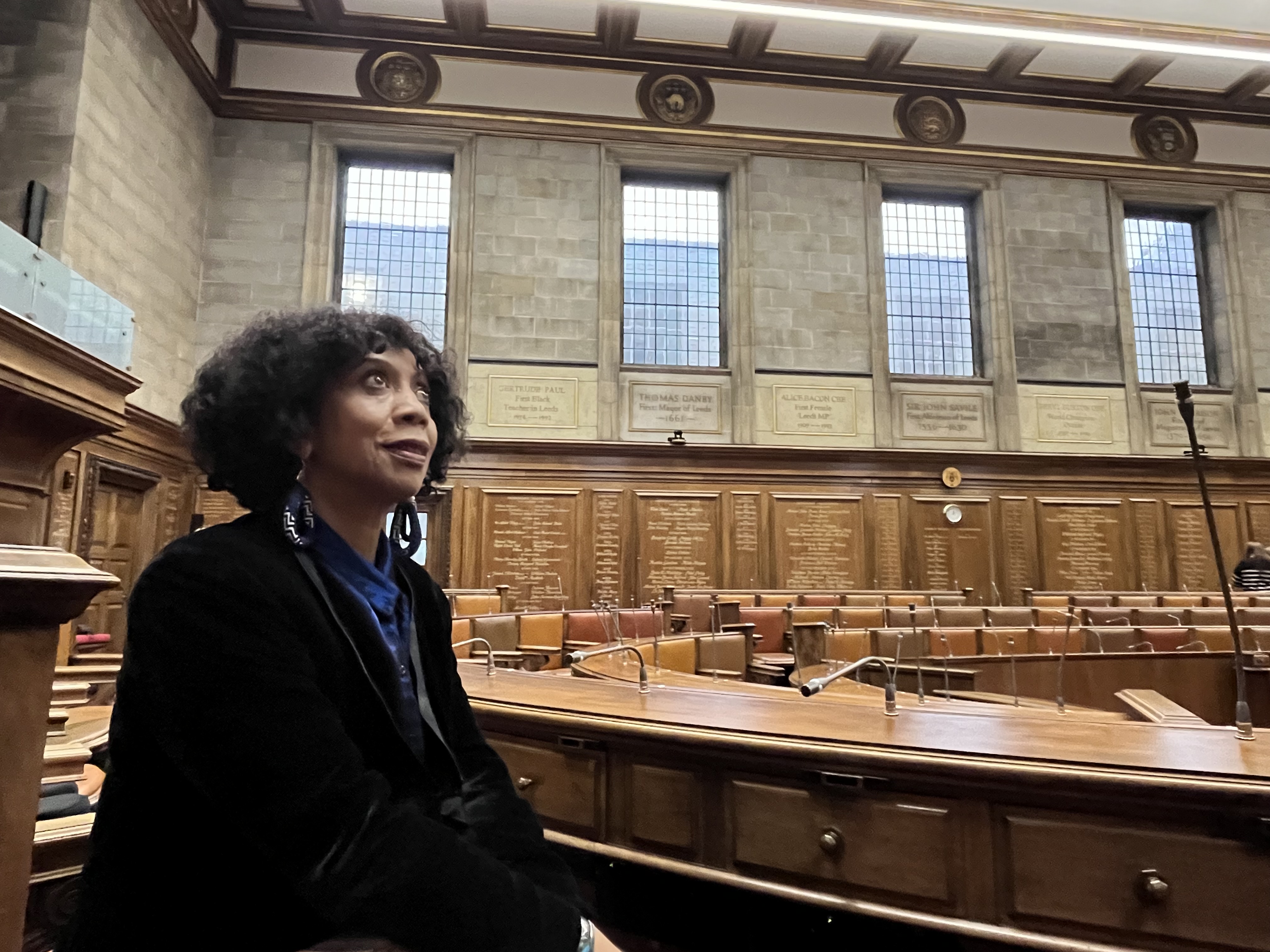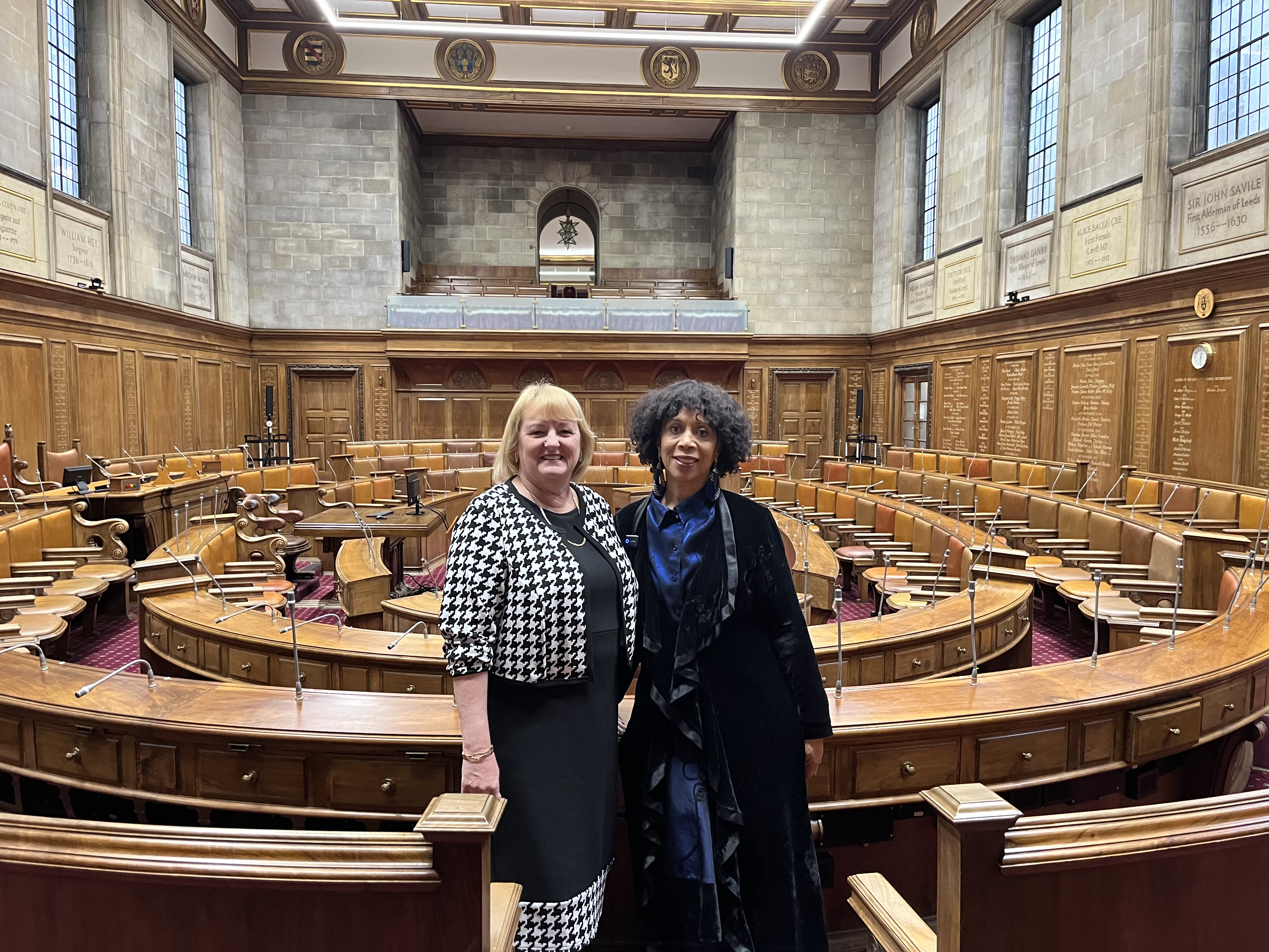 Councillor Debra Coupar, Leeds City Council’s deputy leader and executive member for resources with Heather Paul, daughter of Gertrude Paul, in the council chamber at Leeds Civic Hall. Plaques honouring inspirational Leeds women have been unveiled in the chamber.