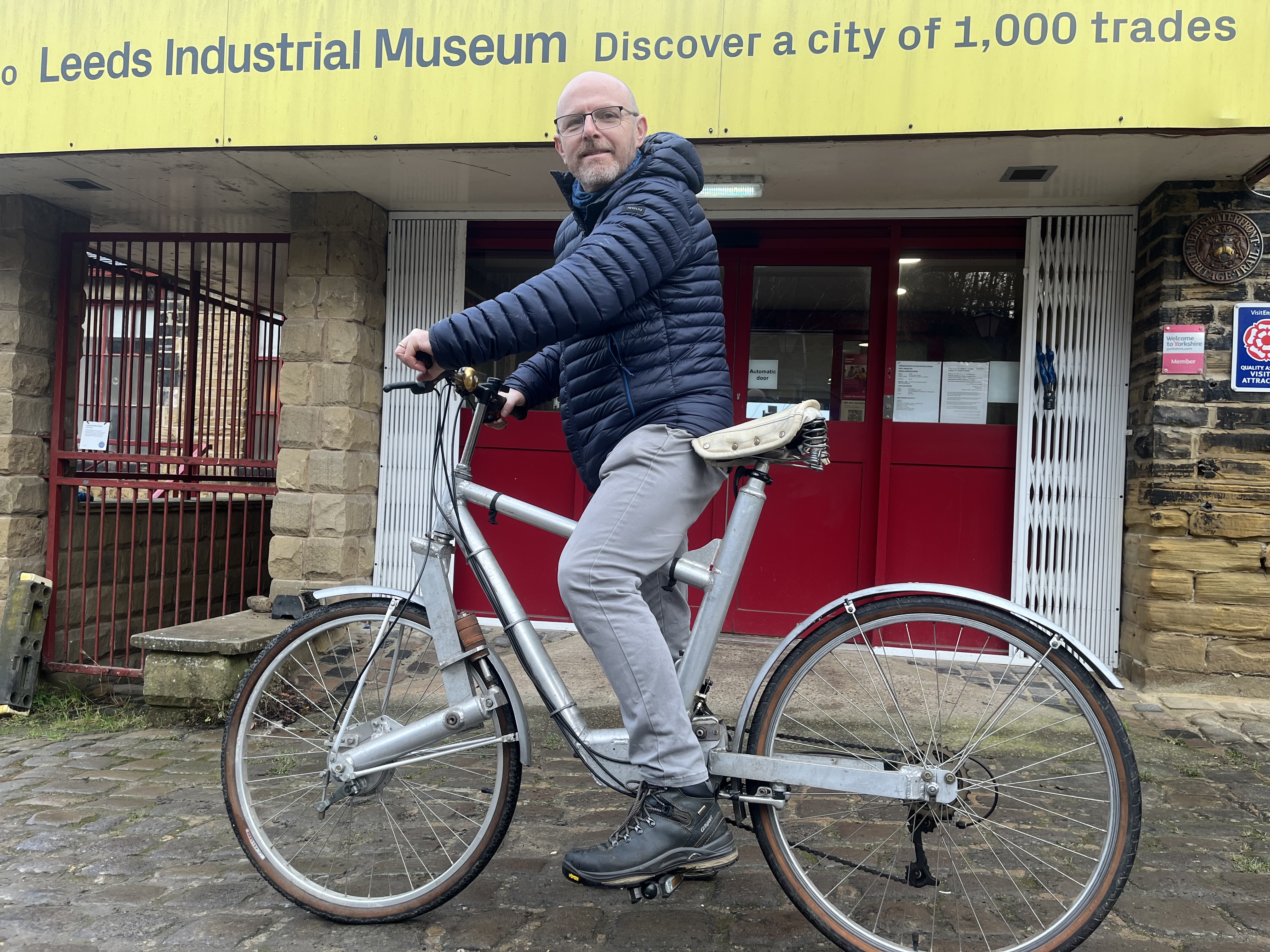 This week his tenacious two-wheeler took on what may have been its biggest challenge yet, when it was road tested on the traditional Victorian cobbles outside Leeds Industrial Museum by curator John McGoldrick (pictured).